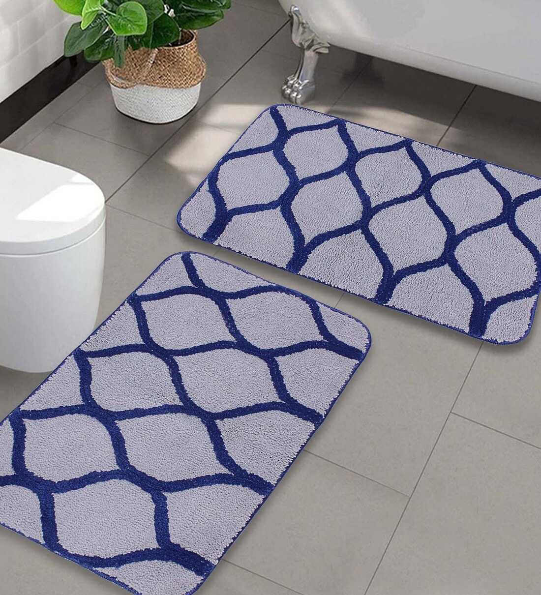 Blue Abstract Microfibre 20x14 Inches AntiSkid Bath Mats (Set of 2)