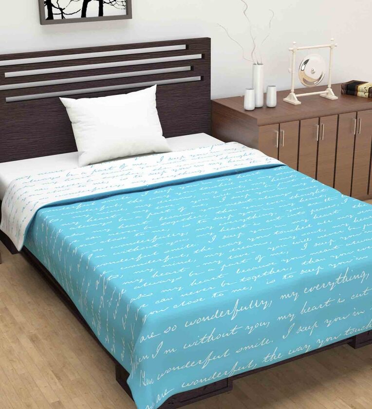 Divine Casa Microfiber 120 GSM Abstract Print Sky Blue & White Single Bed AC Dohar Quilt Blanket