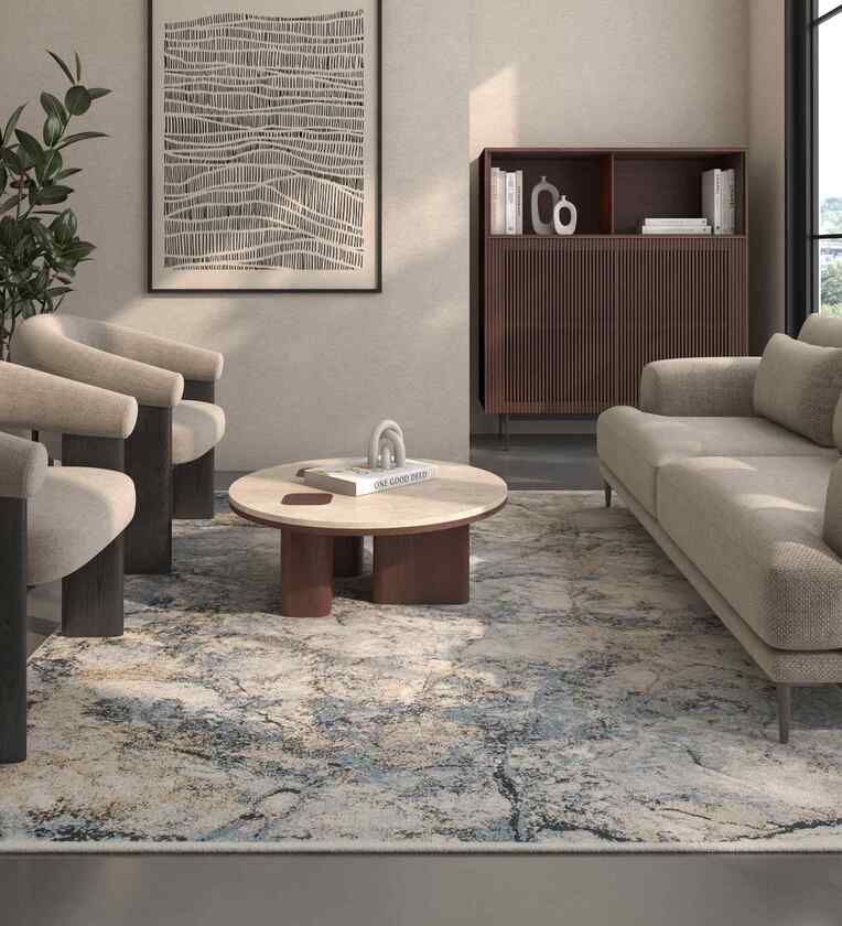 Blue Abstract Polyester 4X6 Feet Machine Made Carpet