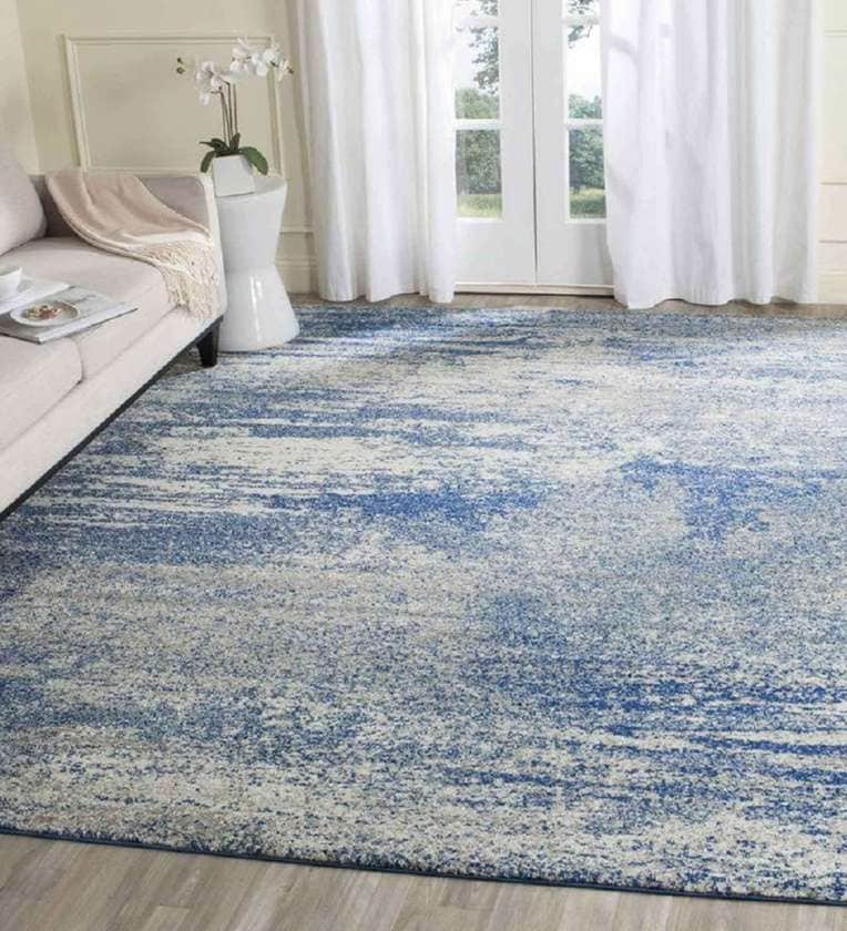 Blue Abstract Polyester 5 ft x 7 ft Machine Made Carpet