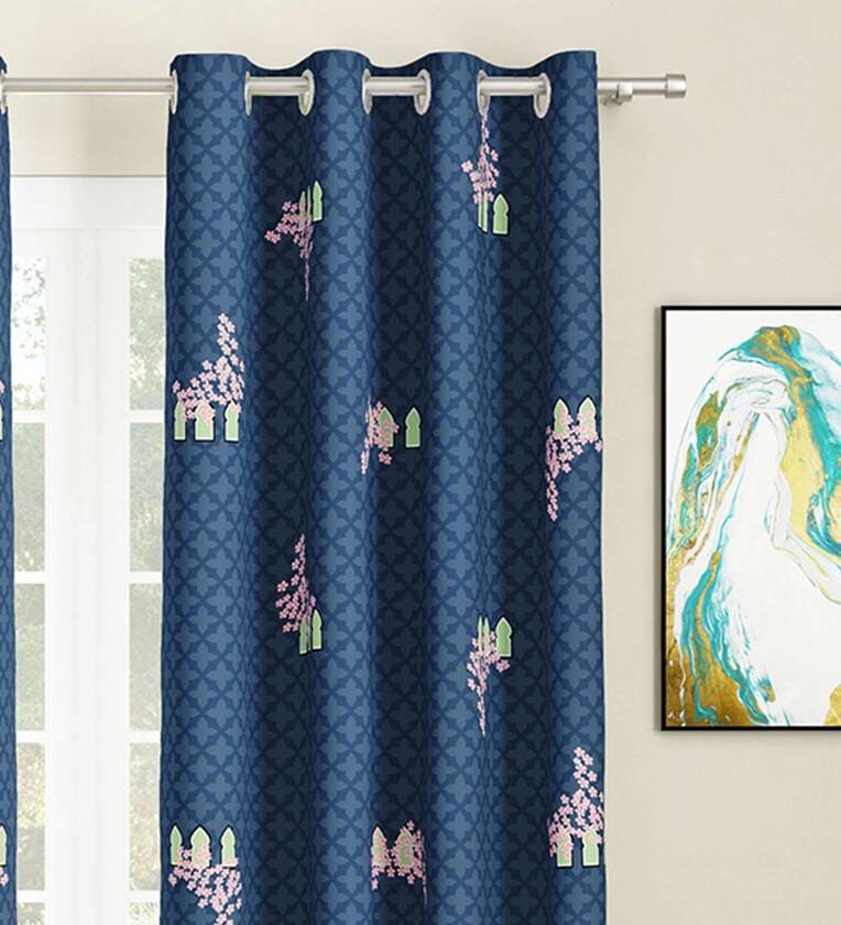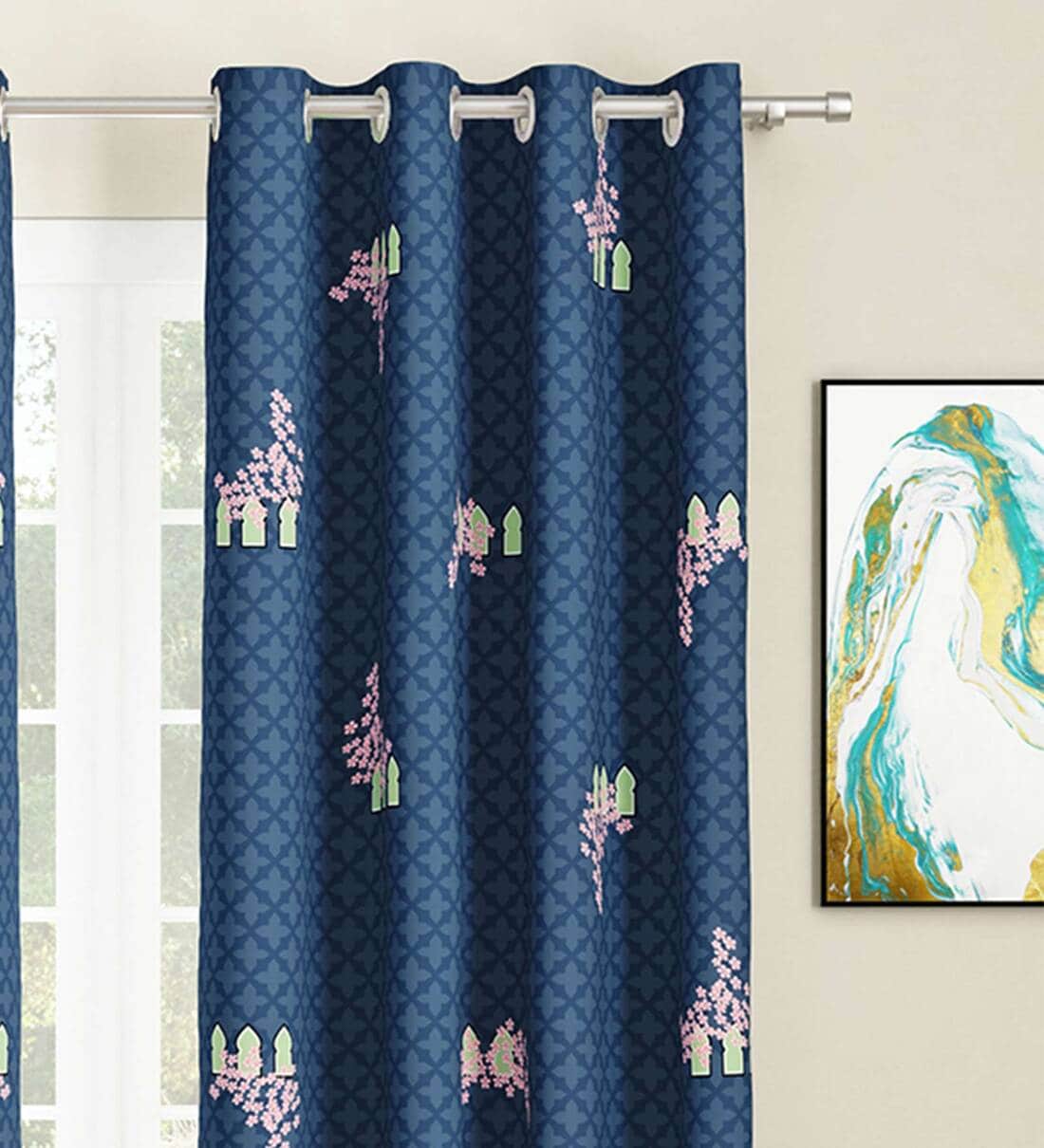 Blue Abstract Polyester 7 Ft Light Filtering Eyelet Door Curtains (Set of 2)