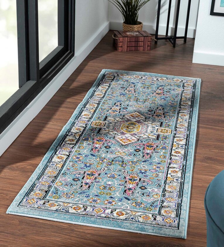 Blue Abstract Polypropylene 59x32 Inches Machine Made Floor Runner