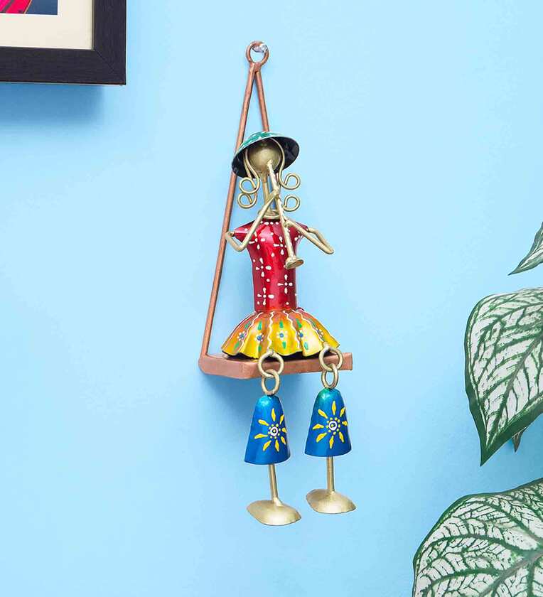 Blue & Red Handpainted Musician Doll Metal Wall Art