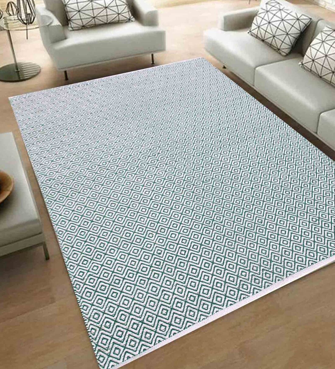 Blue and White Sochi Geometric Cotton 4ft x 6ft Hand Woven Carpet
