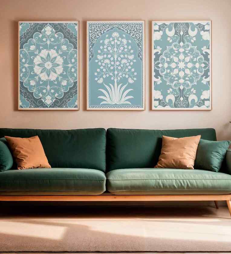 Blue Canvas Printed Traditional Framed 3 Pcs Art Panels