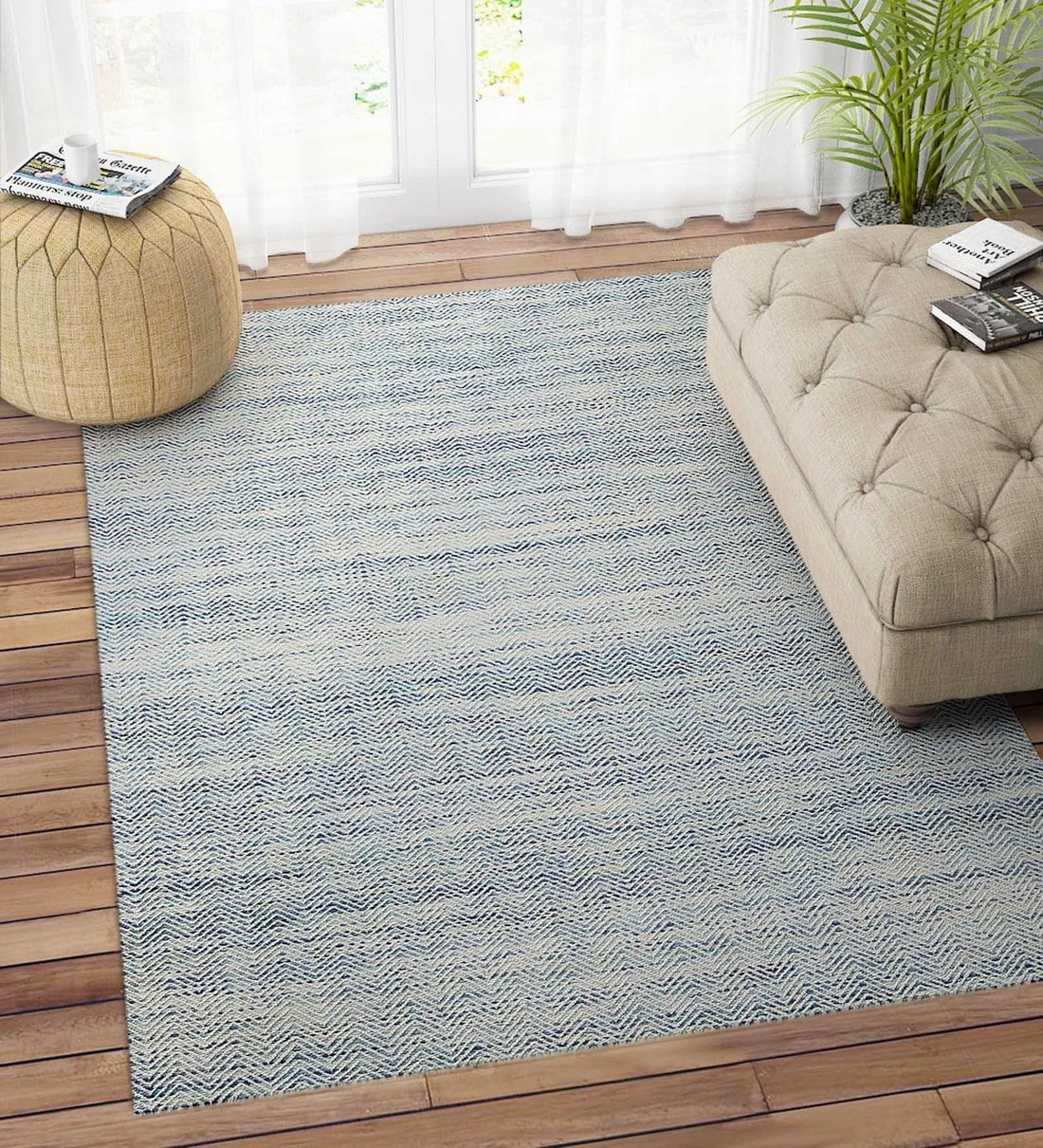 Blue Wool 4 ft X 6 ft Hand Woven Dhurrie