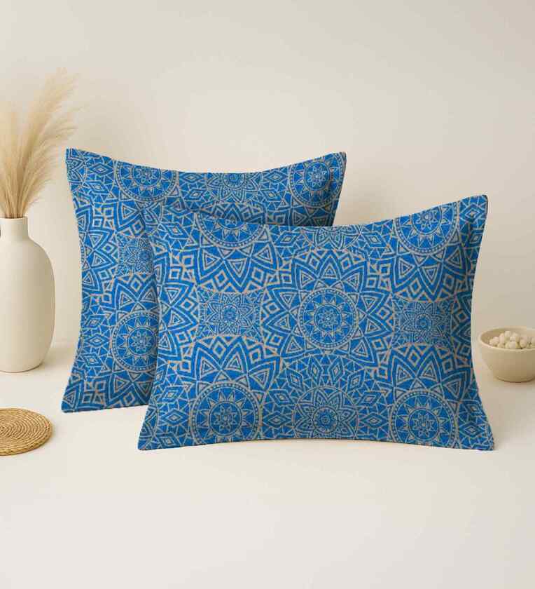 Mayfair Homes London Blue 2 Pieces Ornamental Pure Cotton Rectangle Pillow Covers are crafted from 100% pure cotton, delivering a super soft, breathable, and hypoallergenic experience for enhanced comfort and well-being. Showcasing an elegant ornamental pattern in a serene blue tone, these premium pillow covers add a calming and sophisticated touch to your bedroom or living space. PACKAGE CONTAINS: Set of 2 rectangular pillow covers, tailored to fit most standard-size pillows with a smooth and secure fit. BEST SIZE FIT: Designed for a snug and seamless look, these covers stay in place and complement any bedding setup effortlessly. FABRIC QUALITY: Made with high-quality natural cotton, they are gentle on sensitive skin, durable, and maintain their softness and vibrant color after repeated washes. FEATURES: Wrinkle-resistant, breathable, machine washable, and reusable offering both style and practicality for everyday use. USAGE: Perfect for bedrooms, guest rooms, or decorative spaces, these pillow covers blend comfort and elegance to create a refreshed and inviting ambiance.