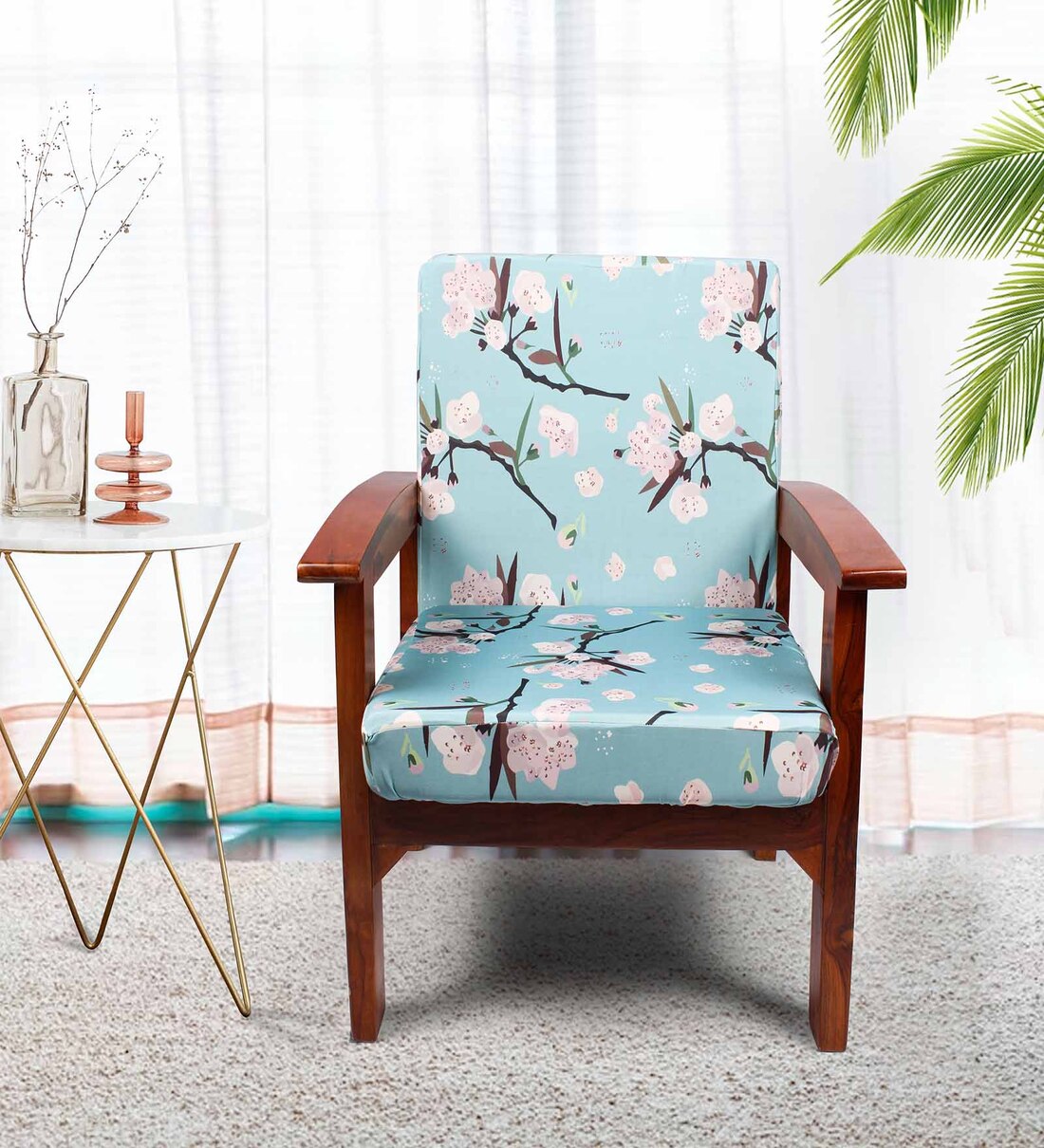 Blue Cotton Floral 20x20 Inches 1 Seater Sofa Chair Covers (Pack of 4)