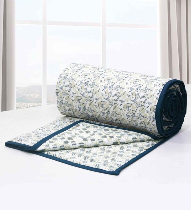 Blue Cotton Geometric 144 TC Single Dohar