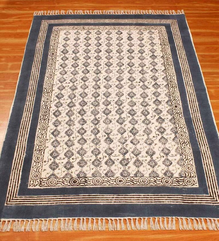 This is a beautiful handmade Cotton kilim rug weaved on Indian looms stamped with natural vegetable-dyes using hand-made wooden blocks achieving the perfection of block printing art of Jaipur. This is best suitable for your home office entrance, bedroom, living room, kids room, dinning room, kitchen and outdoor patio, terrace, beach and garden. All the materials and color dyes used in this beautiful handmade rug are sustainable and eco-friendly. NOTE - Actual colors may slightly vary from the colors shown in the pictures due to photography setup with natural lights, different monitor screen settings and the nature of the product, being 100% hand made.
