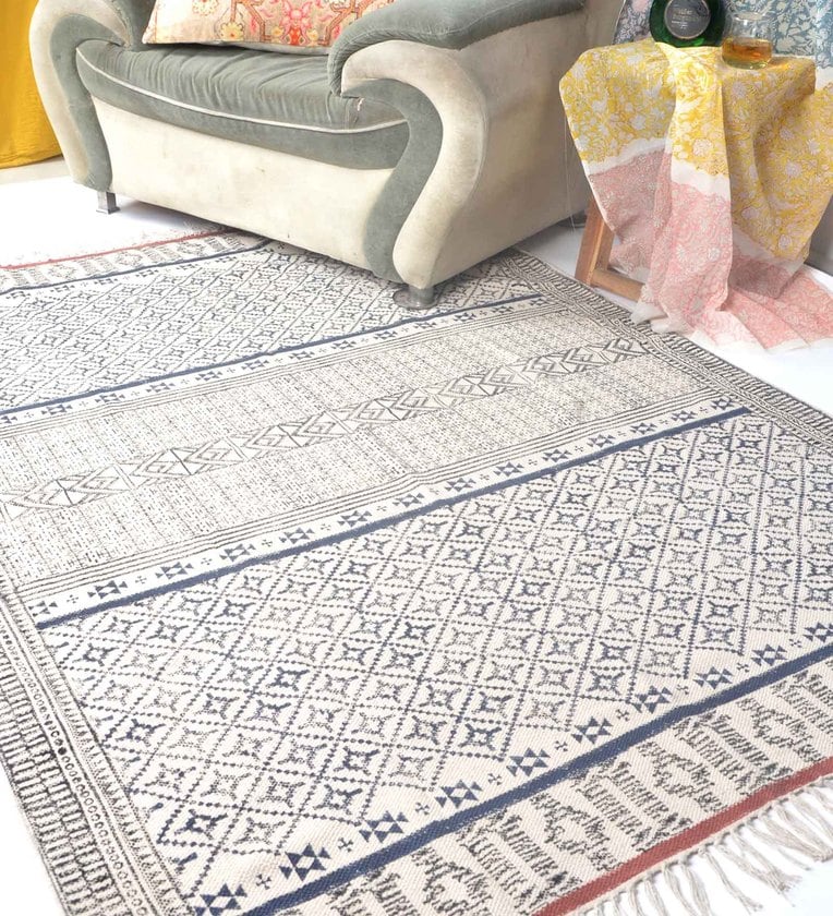 Blue Cotton Hand Woven 5 x 3 Feet Dhurrie