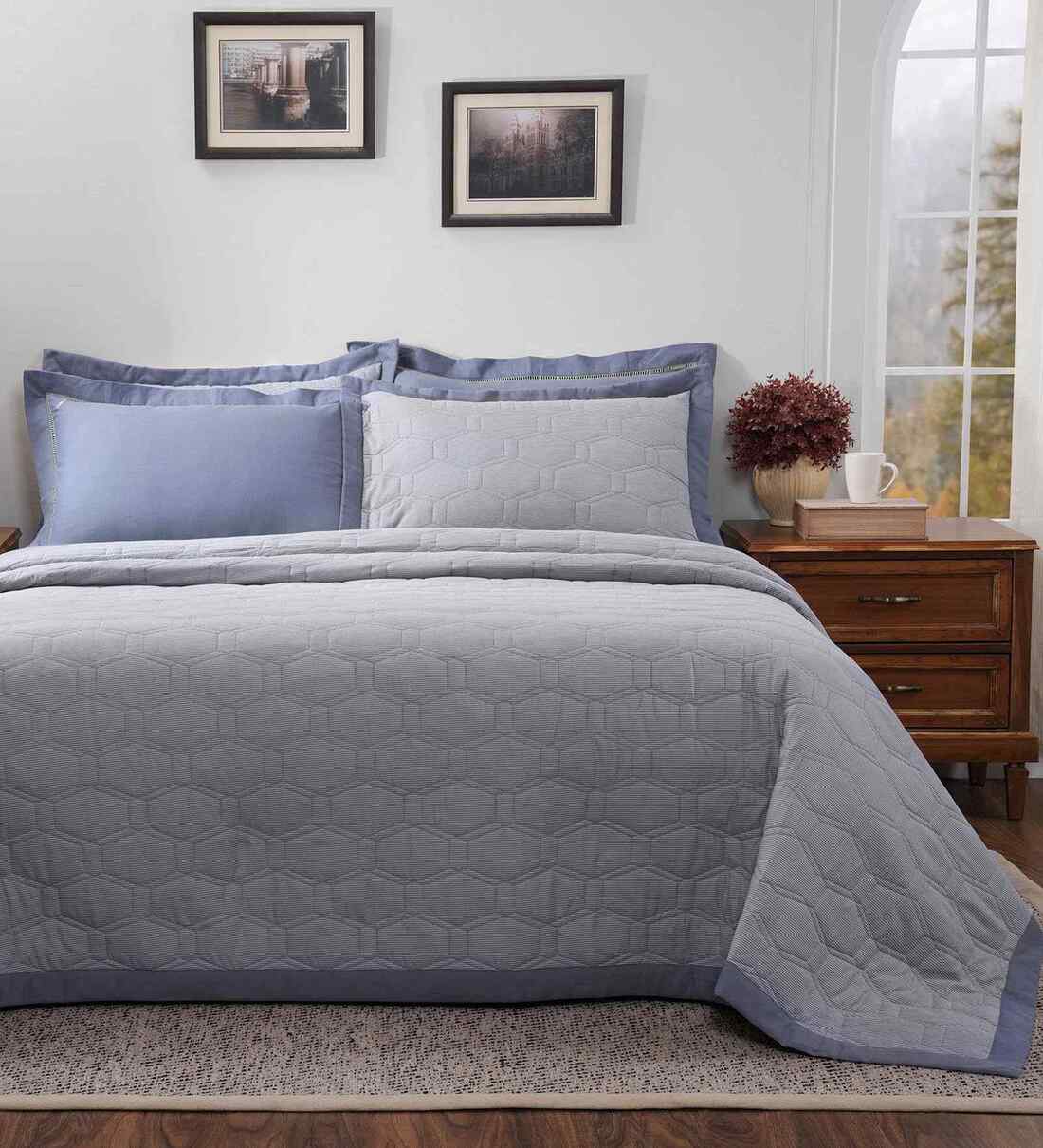 Blue Cotton Polyester Solid 100 GSM Single Bed Quilt