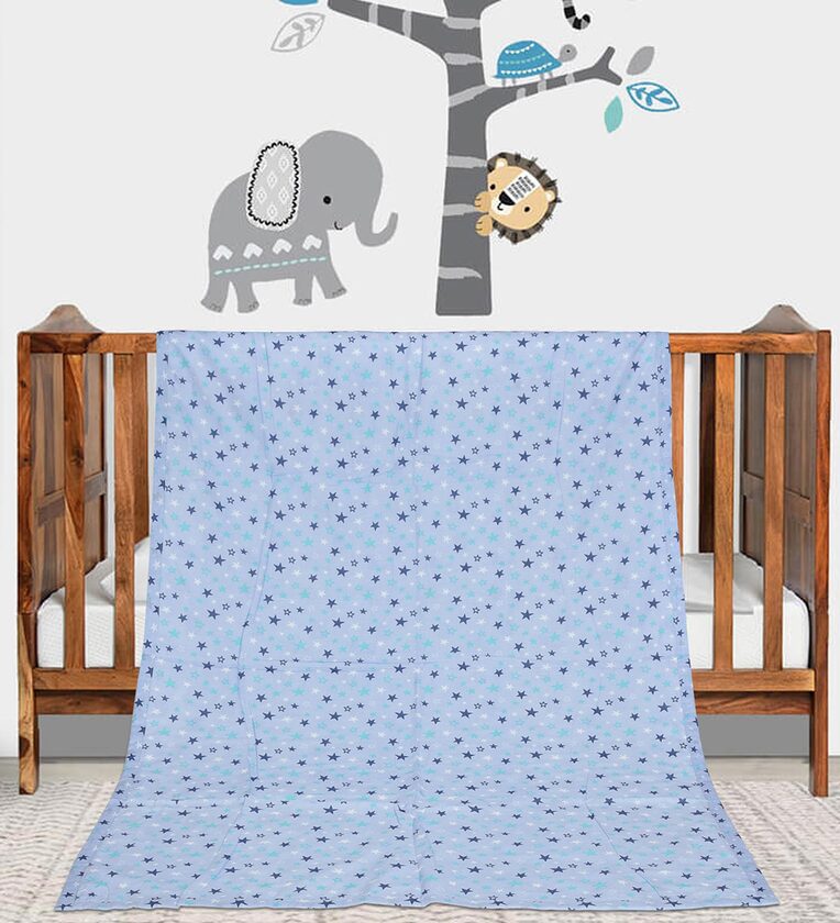 Blue Cotton Reversible Anti Fungal Pack of 1 Crib Size Kids Dohar