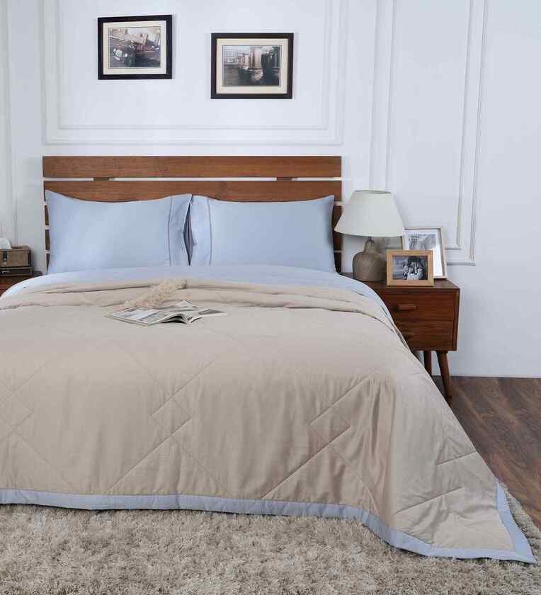 Blue Cotton Solid 120 GSM Double Bed Quilt
