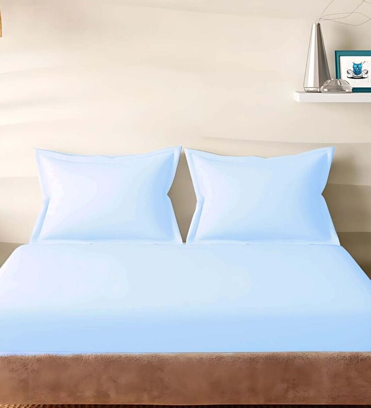 Sleeping Owls 100% Soft Cotton Solids210TC Plain Super King Bedsheet with 2 Pillow Cover - SKY BLUE