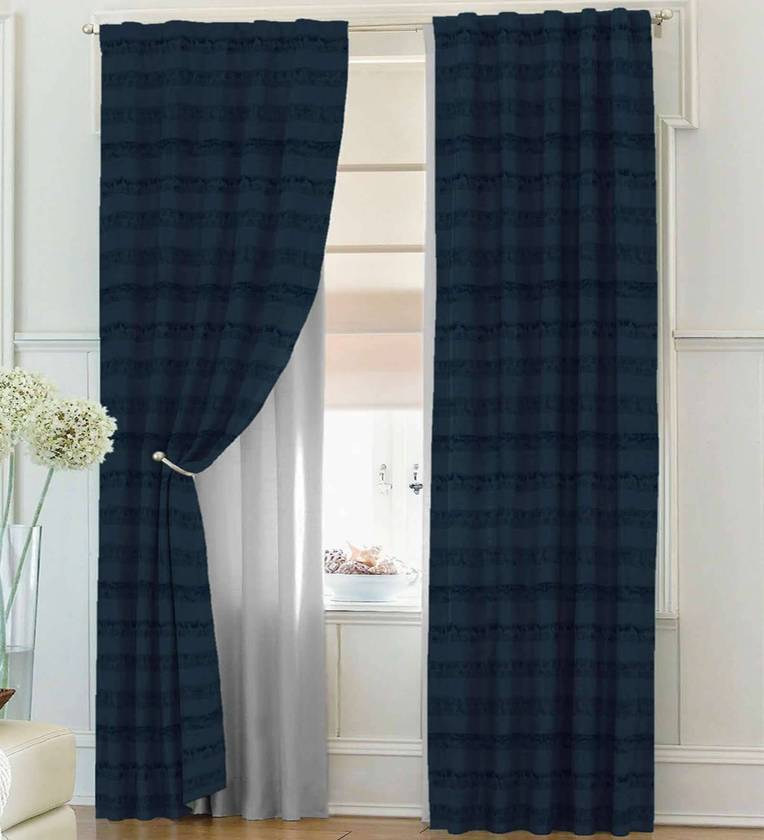 Blue Blackout Cotton 7 Feet Rod Pocket Door Curtain