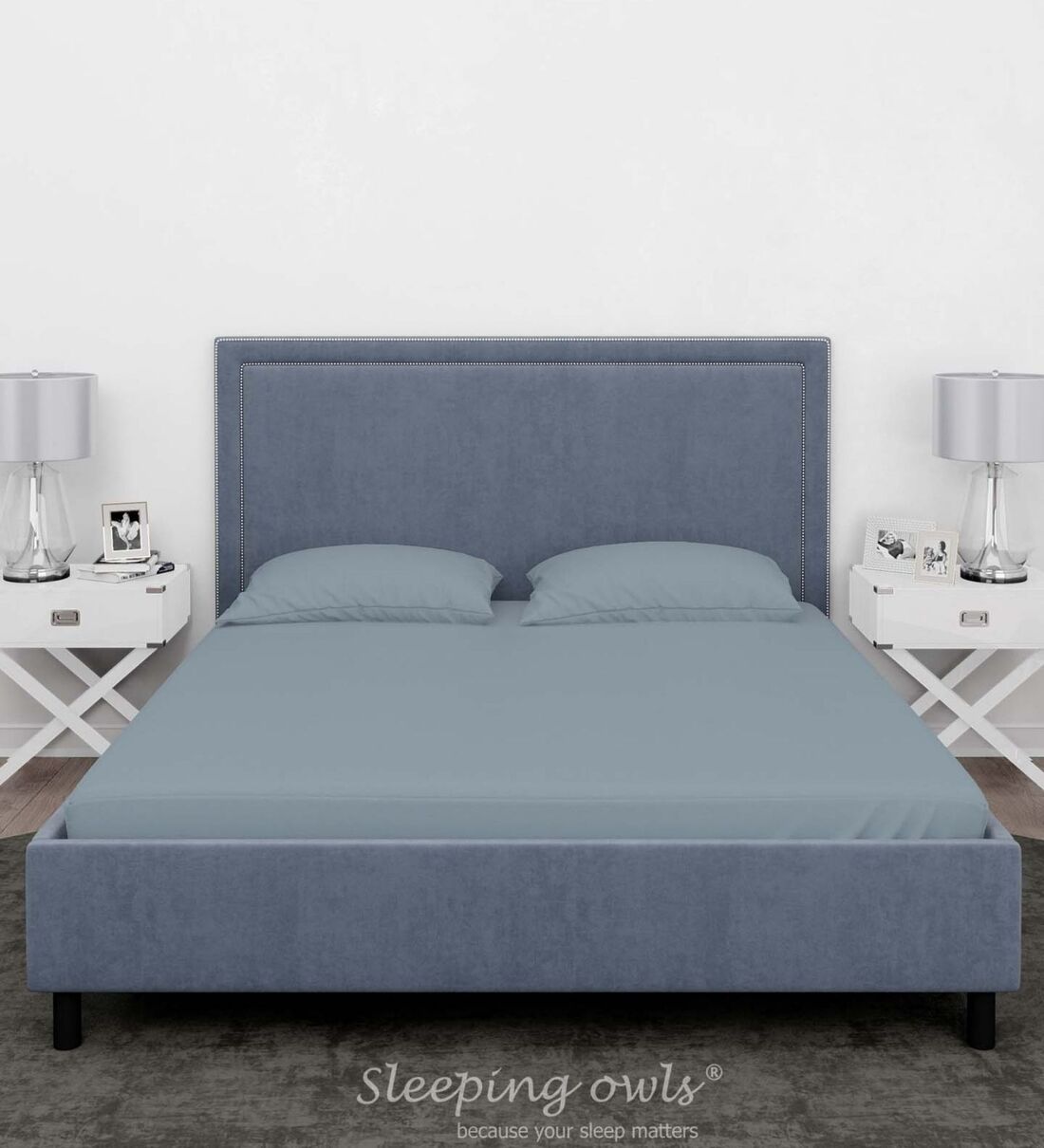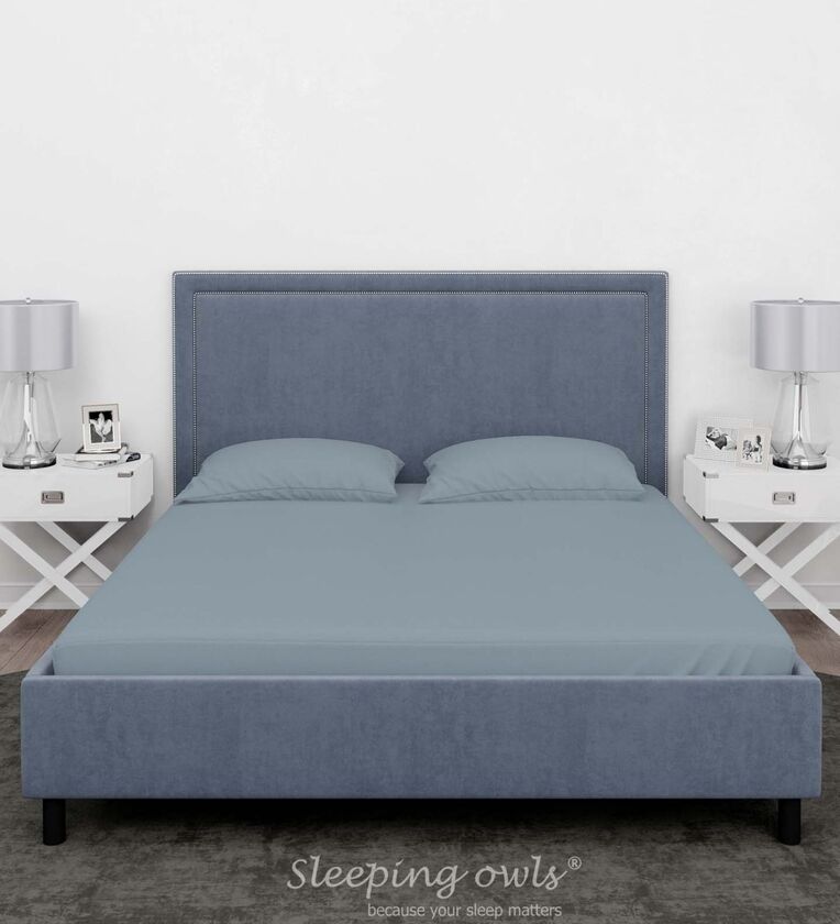 Sleeping Owls 100% Soft Cotton Solids Finest 300TC Plain Super King Bedsheet with 2 Pillow Cover - SLATE BLUE