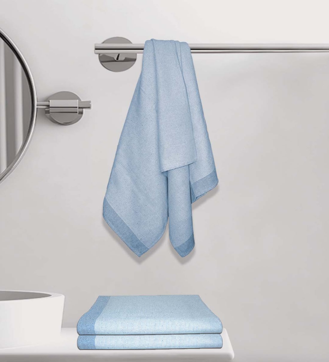 Blue Cotton Striped 220 GSM Bath Towels 3 Pc