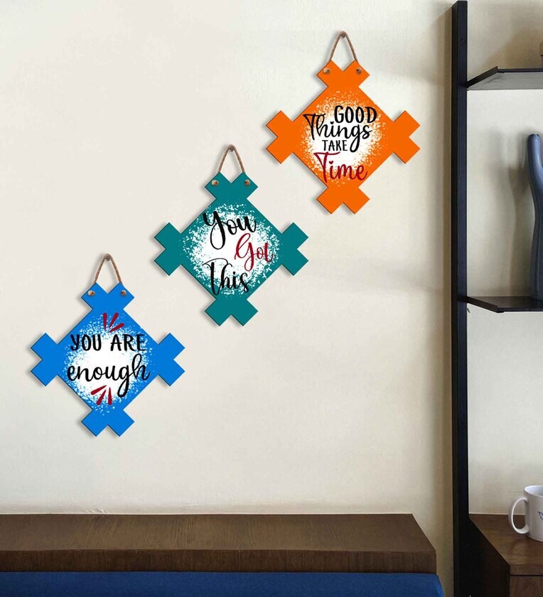 Blue Engineered Wood (Set of 3) Wall Hanging