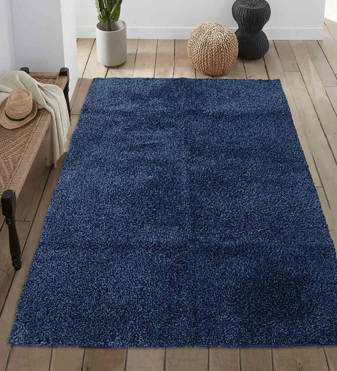 Blue Fiber Solid 4 X 6 Feet Machine Made Carpet