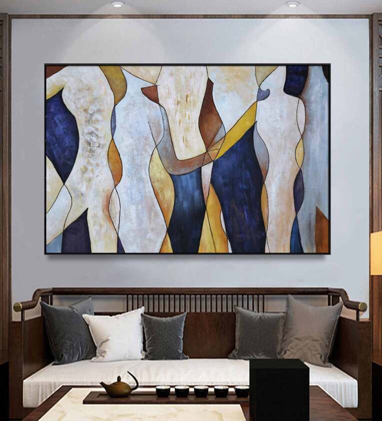 Blue Figurative Canvas Framed Acrylic Paint Hand Paintings