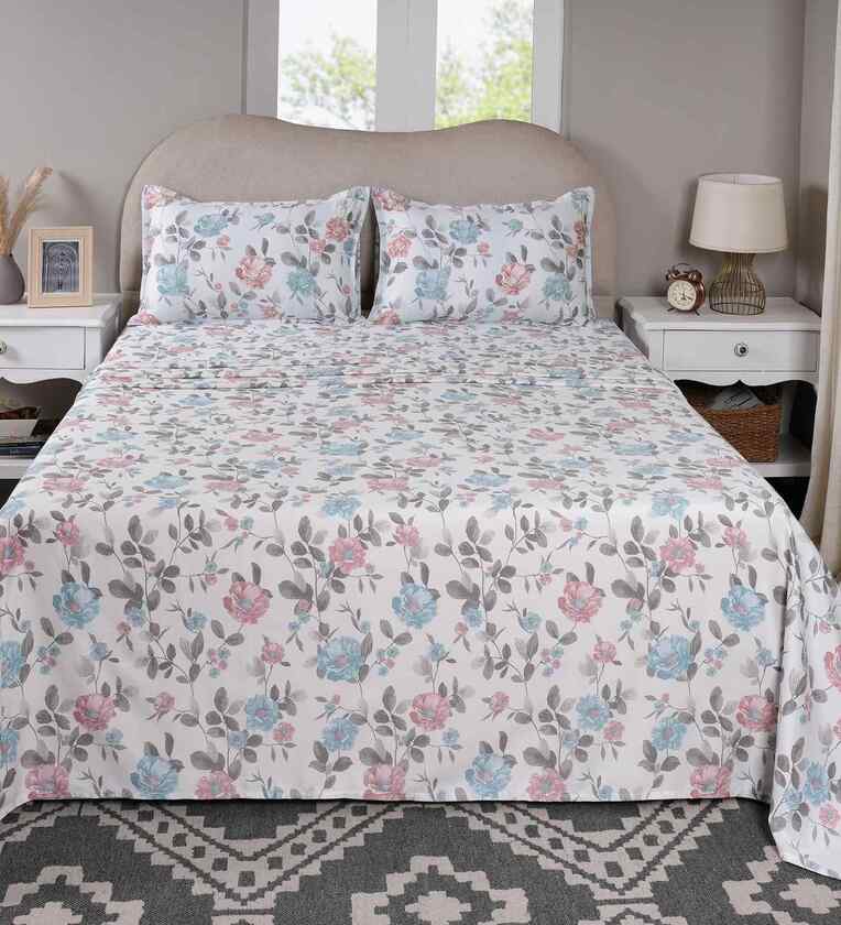 The elegant floral prints with contrast pillows makes the complete set entirely exquisite. The pillows can be used from both sides with entirely different look. These sheets are soft and smooth with extra luxury sateen finish. The sheet has been made from compact yarn and mercerized making it lustrous and durable. The long staple fibers used in the sheet adds to its softness and high quality. The breathable nature of cotton fibers makes it softer & skin friendly.