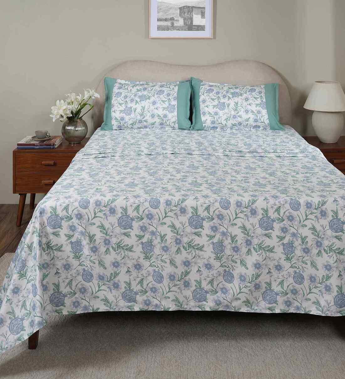Blue Fruit Print 200 TC Cotton Single Bed Sheet with 1 Pillow Cover Sensory Bloom Collection