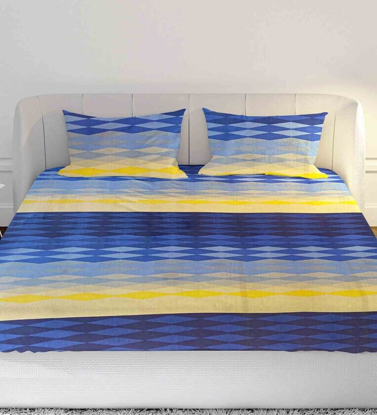 Blue Geometric 104 TC Cotton 1 Double Bedsheet with 2 Pillow Covers