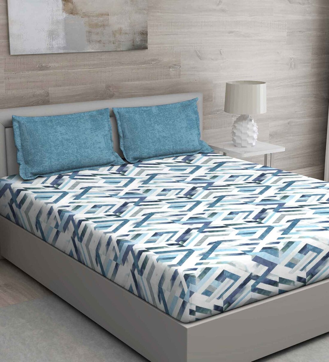 Blue Abstract 150 TC Cotton Queen Sized Bed Sheets with 2 Pillow Covers