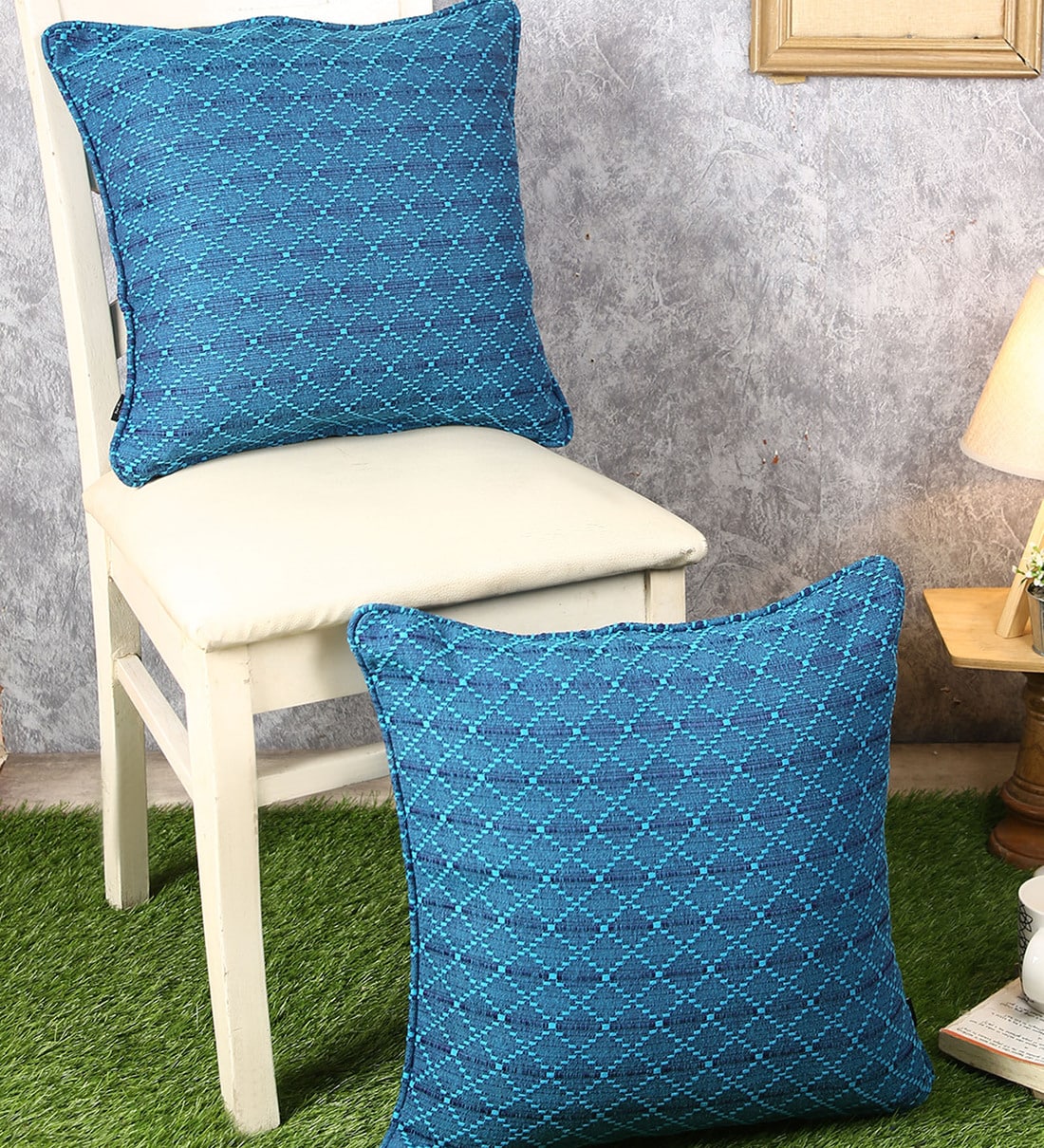 Blue Geometric Cotton 18 x 18 Inches Cushion Covers (Set of 2)