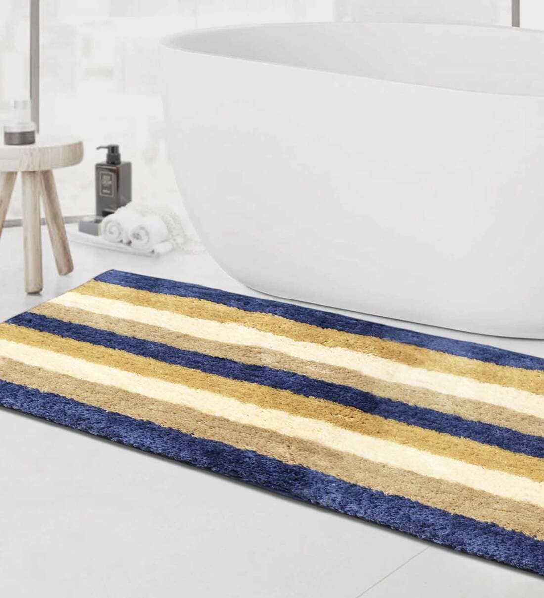 Blue Geometric Microfibre 36x24 Inches AntiSkid Bath Mat