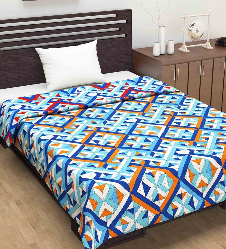 Divine Casa Microfiber Reversible 120 GSM Geometric Print Sky Blue and Orange Single Bed AC Dohar Quilt Blanket