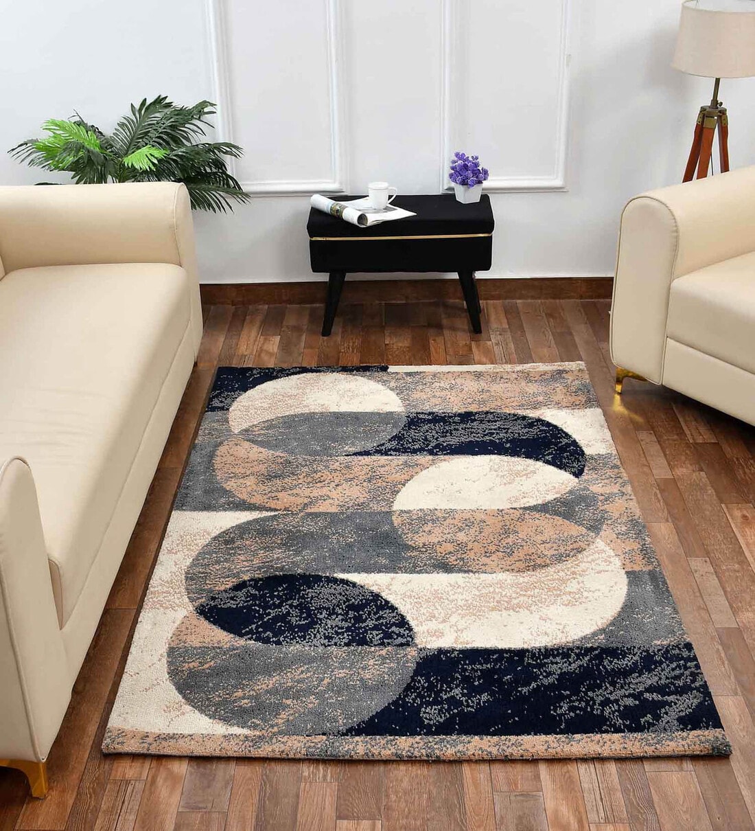 Blue Geometric Polyester 5 x 7 Feet Machine Made Carpet