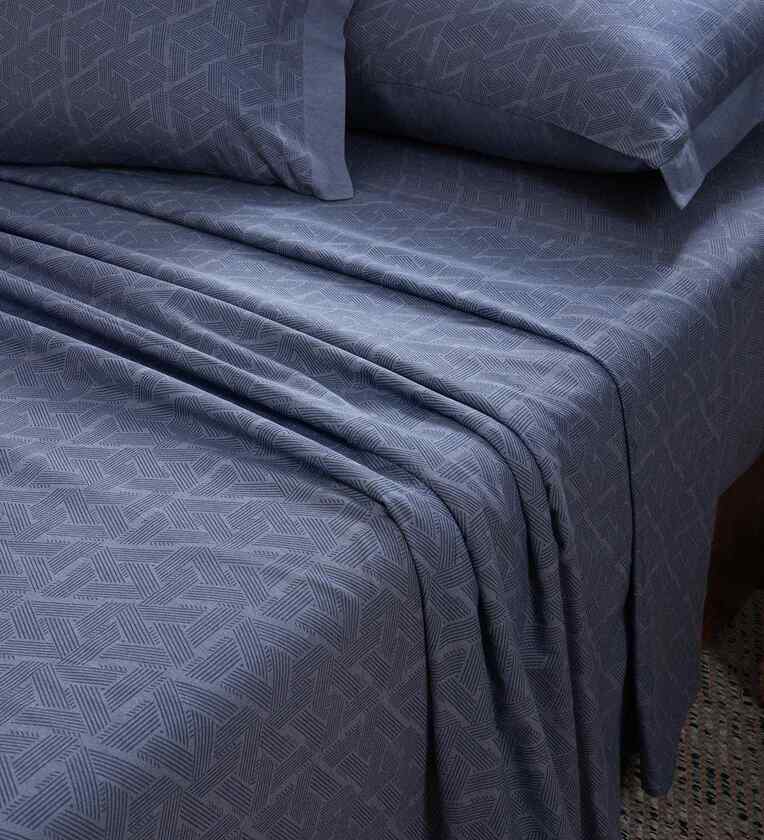 Blue Geometric Print 300 TC Cotton King Size Bed Sheet with 2 Pillow Covers 24 Collection
