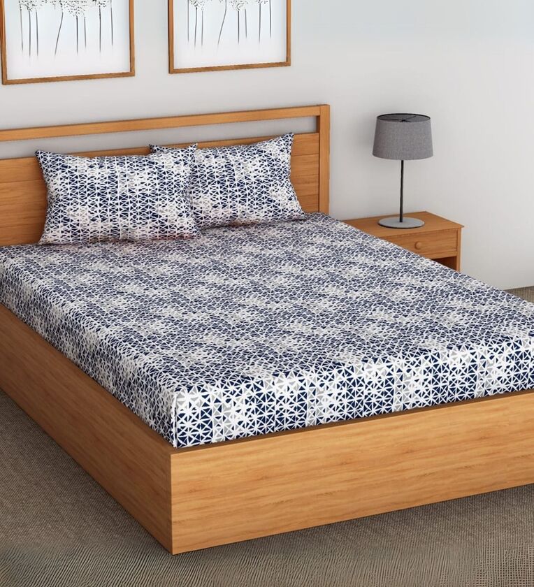 Blue Geometric Printed Fitted Bedsheet for 72 x 78 Inches Mattress with 6 Inch Depth