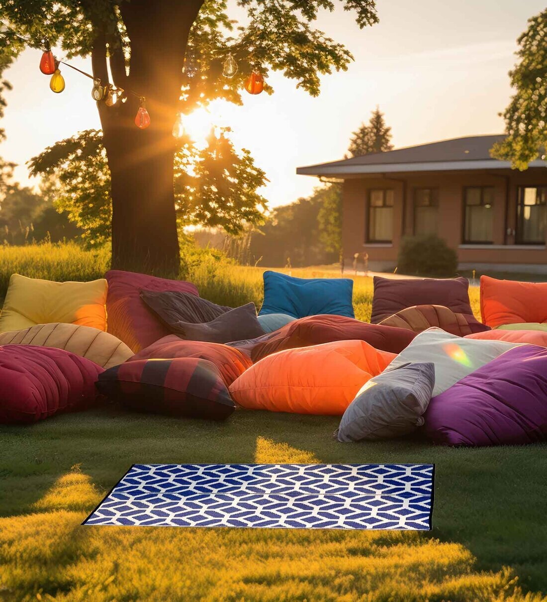Sapana Carpet-Mats are made from 70% Virgin and 30% Recycled polypropylene straws to enhance durability and maintain softness. The elegant patterns of our floor mat chatai complements any decor from classic to contemporary. You can easily roll or fold to pack our mats in your bags and carry them outdoors for your next beach or garden picnic. Sapana Carpet-Mats are reversible so you can use it on both sides. Sapana Carpet-mats are designed to elevate and liven up any space. Our mats are multi-purpose and are made for indoor and outdoor use.