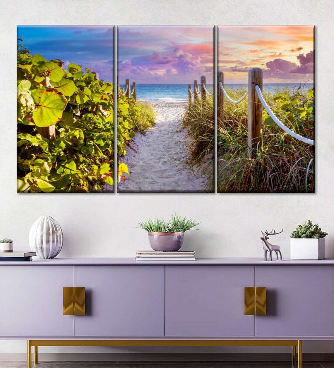 POSTERS AND TRUSS Blue Green 3 Pieces Seagrapes Florida Painting Wall Art