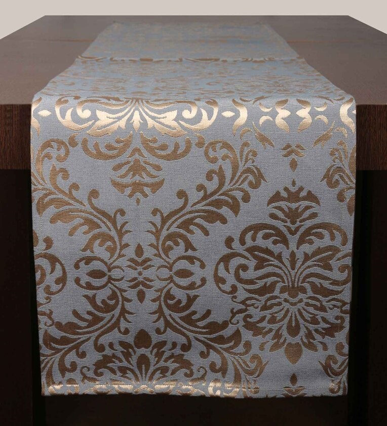 Blue Hallway Damasc Cotton Jacquard (96 x 13) Table Runner