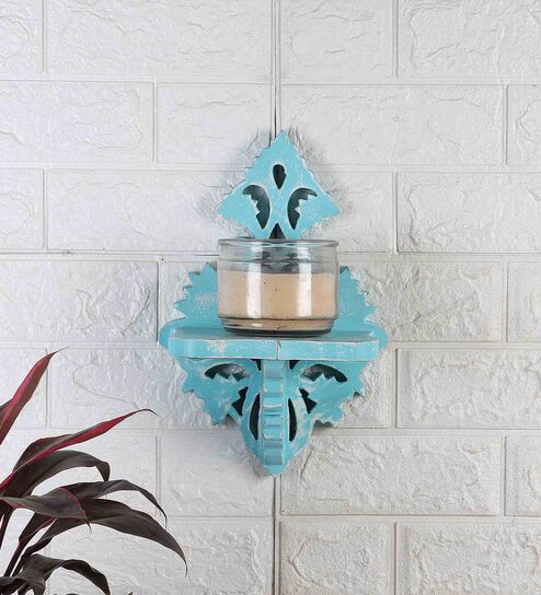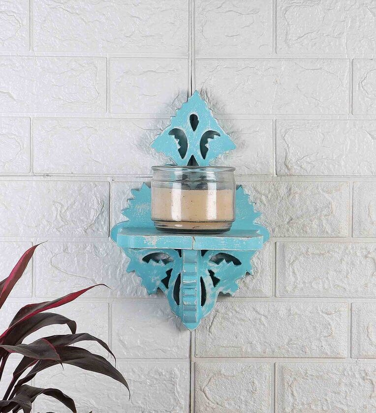 Blue Handcrafted Solid Wood Traditional Wall Shelf