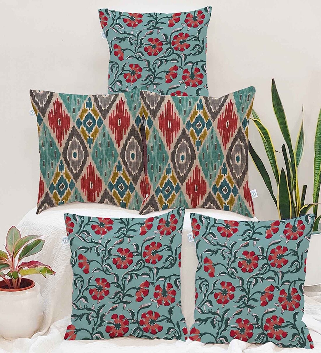 Blue Jute Abstract 16x16 inches Cushion Covers (Pack of 5)