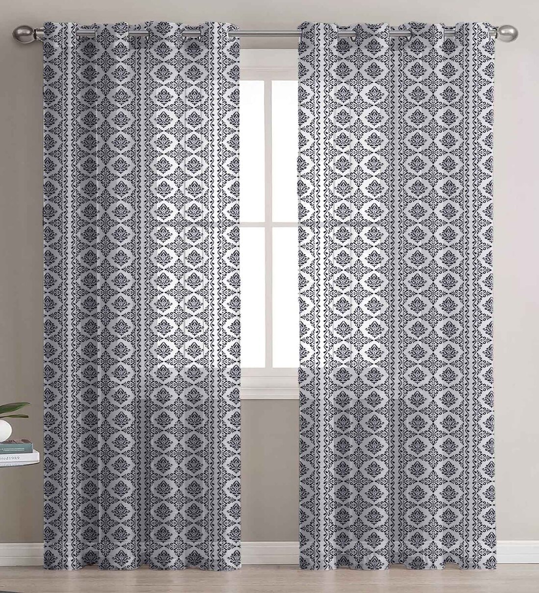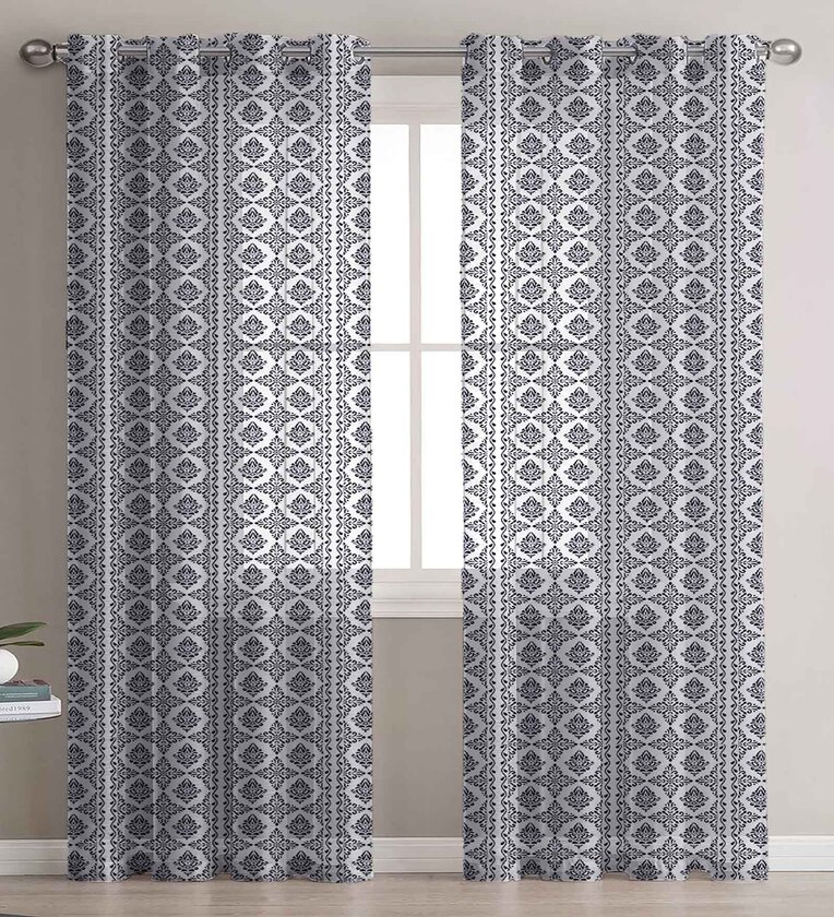 Blue Linen Ethnic motif 4ft Sheer Eyelet (1Pc) Window Curtain