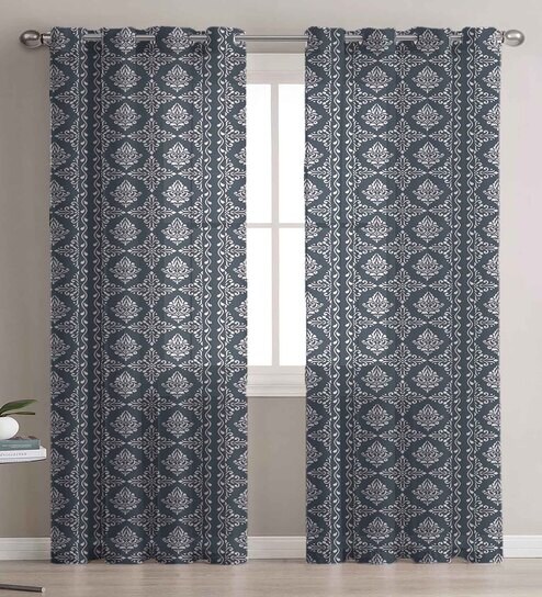 Blue Linen Ethnic motif 5ft Sheer Eyelet (1Pc) Window Curtain