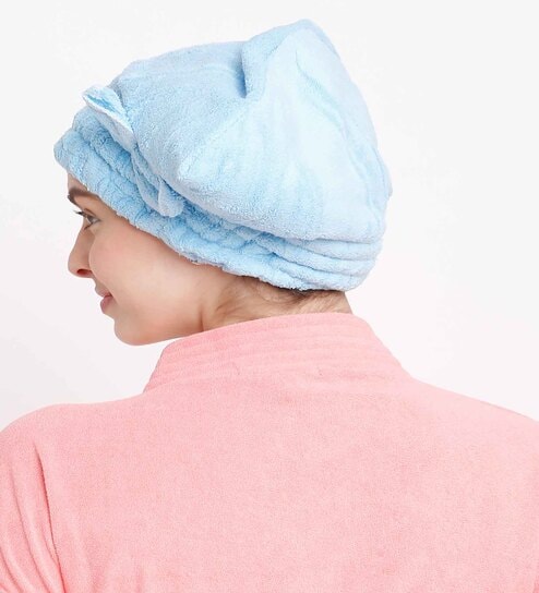 Blue Microfiber Solid 380 GSM Hair Cap Towel (1 Pc)