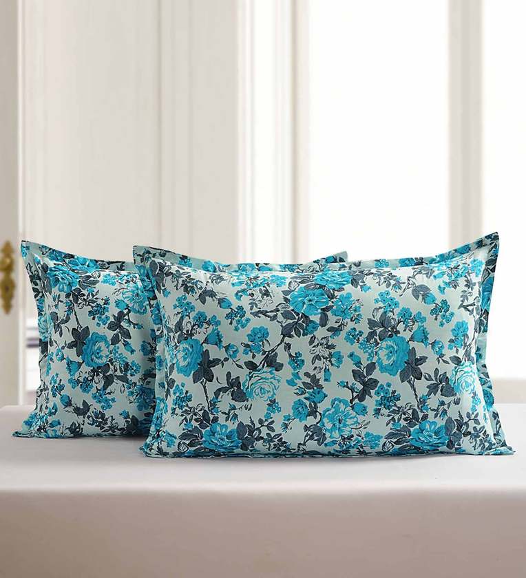 Blue Patterned 144TC Cotton 18 x 28 Inches Pillow Covers (Set of 2)