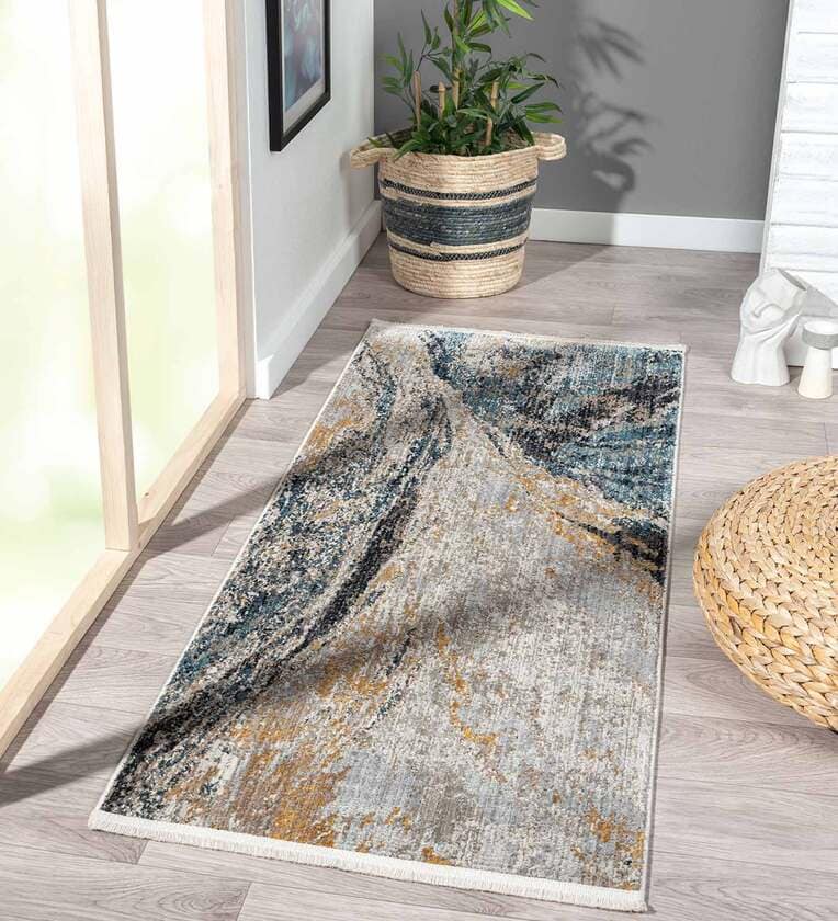 Blue Polyester 5 x 2 Feet Machine Bedside Runner