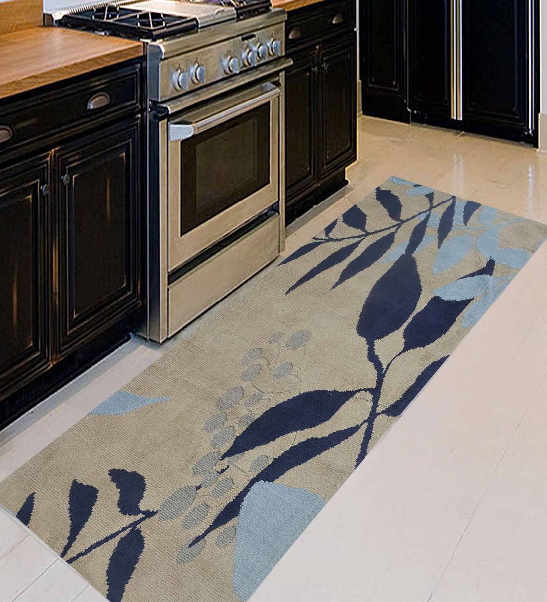 Blue Polyester 55 x 22 Inches Hand Tufted Floor Runner
