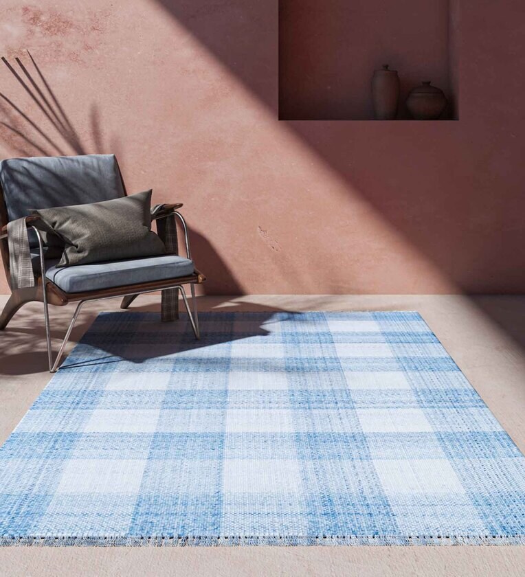 Blue Polyester Geometric 60 x 84 Inches Flat Weaves Dhurries