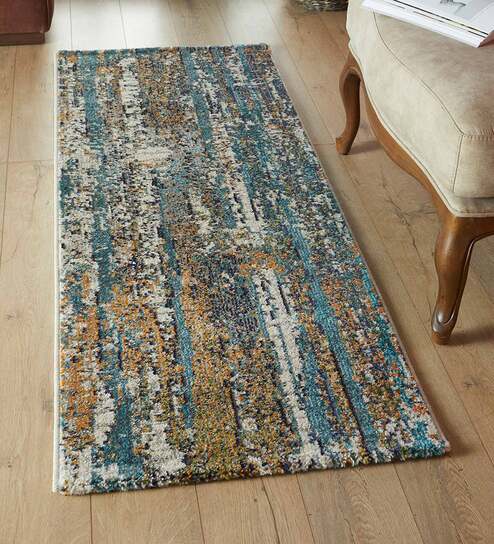 Give a colourful and modern touch to your space with this area rug, an elegant and playful piece thats bound to grab attention. It showcases abstract design in various colours like blue, olive, rust, mustard. Machine-made in Turkey has a jute backing, made with 100% PP Frisee, lightest yarn. This area rug is ideal for busy space as it is easy to clean and easy to maintain since its colourfast and anti-bacterial. The medium 0.9 pile height is ideal for rooms with heavy traffic, like your living room.