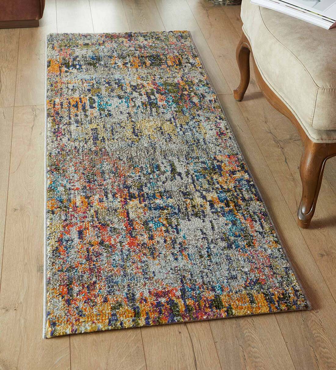 Give a colourful and modern touch to your space with this area rug, an elegant and playful piece thats bound to grab attention. It showcases abstract design in various colours like blue, olive, rust, mustard. Machine-made in Turkey has a jute backing, made with 100% PP Frisee, lightest yarn. This area rug is ideal for busy space as it is easy to clean and easy to maintain since its colourfast and anti-bacterial. The medium 0.9 pile height is ideal for rooms with heavy traffic, like your living room.