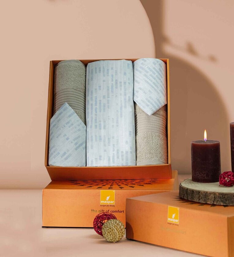 5Pc Bed Bath Set : {1 Bed Sheet (275X275 cm) + 2 Pillow Covers (45X68 cm) +2 Bath Towels (75X150 cm) +1 Box (34.5X34.5X10.5 cm)}